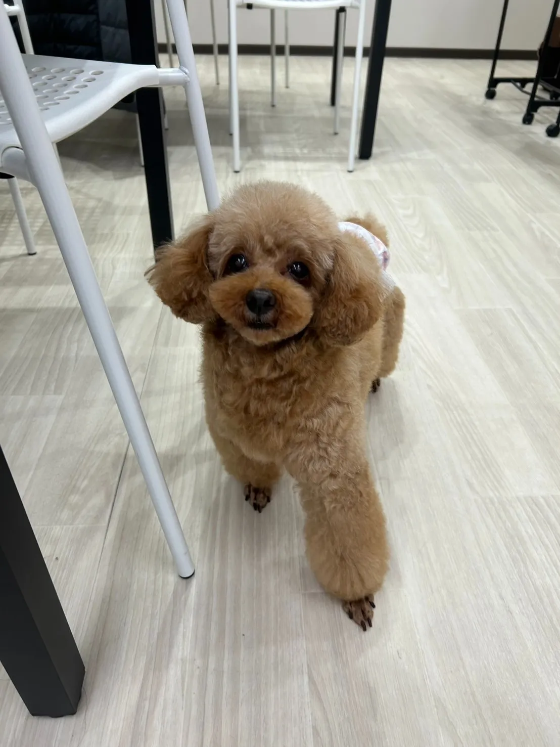 特にお客様のおひざに乗るのが大好きで、よく私おかだの愛犬はなとお客様のおひざ抱っこの取り合いをしていたものです🐶💖。でも、はなが先におひざにいると、遠慮しちゃう優しいアンちゃん💕