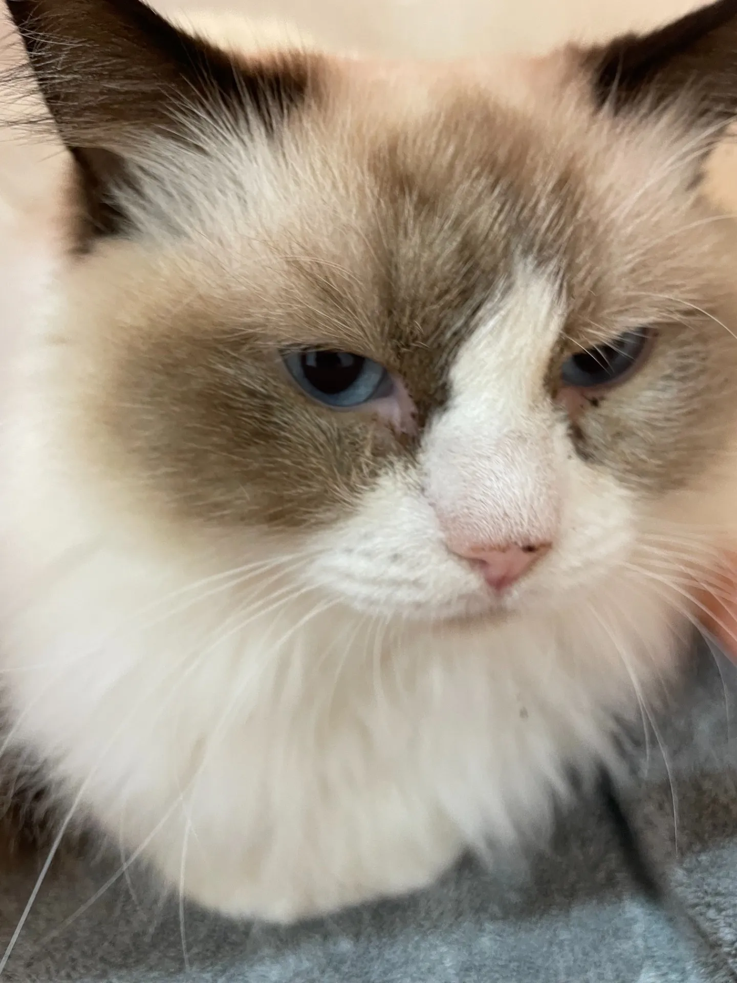 ラグドールという種類の女の子で、推定年齢は4~5歳、体重は4.5㎏。
