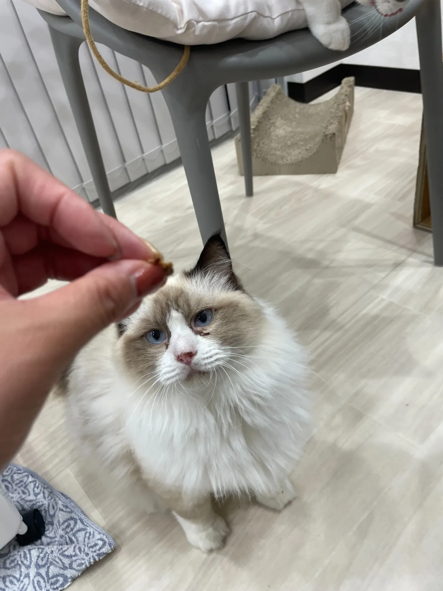 おやつタイムになると、急に『にゃーん』と甘えた声を出して寄ってくるんですよ💕