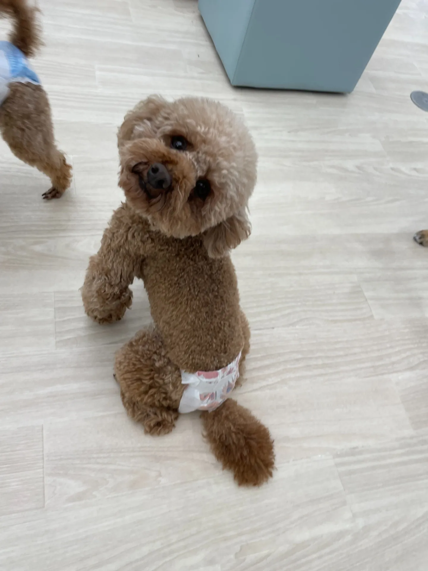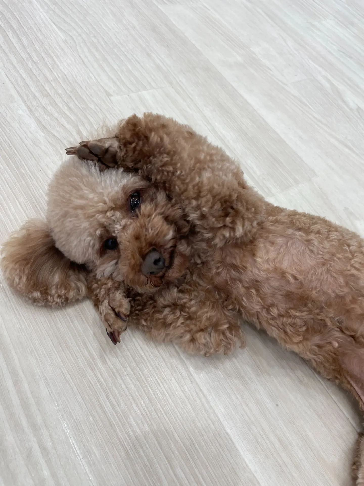トイプードルの女の子で推定年齢5歳、体重約4㎏の可愛い子です🌷