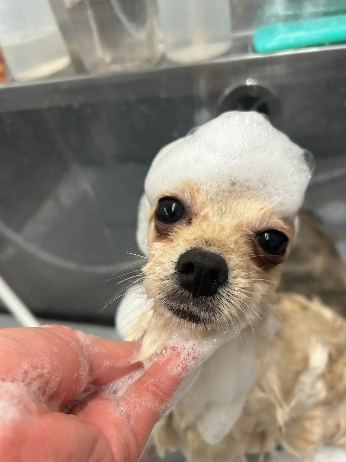 シャンプーの泡に包まれながら、なんとも言えない幸せそうな顔を見せてくれました🛁💕