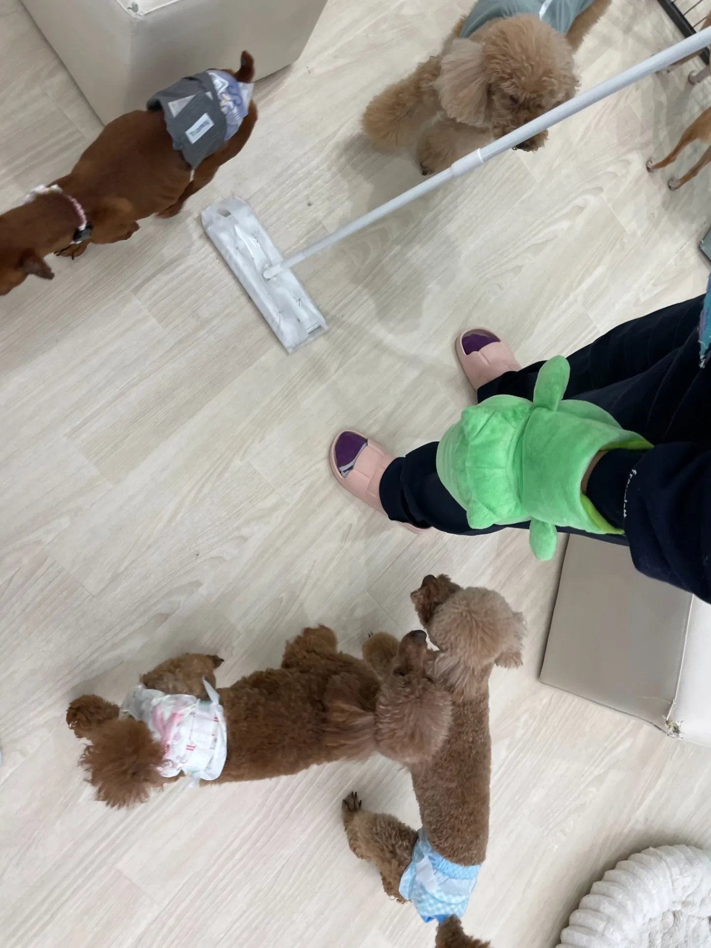 お仕事内容には、店内清掃や犬のオムツのカット加工、ご飯をあげることも含まれています🍽️。