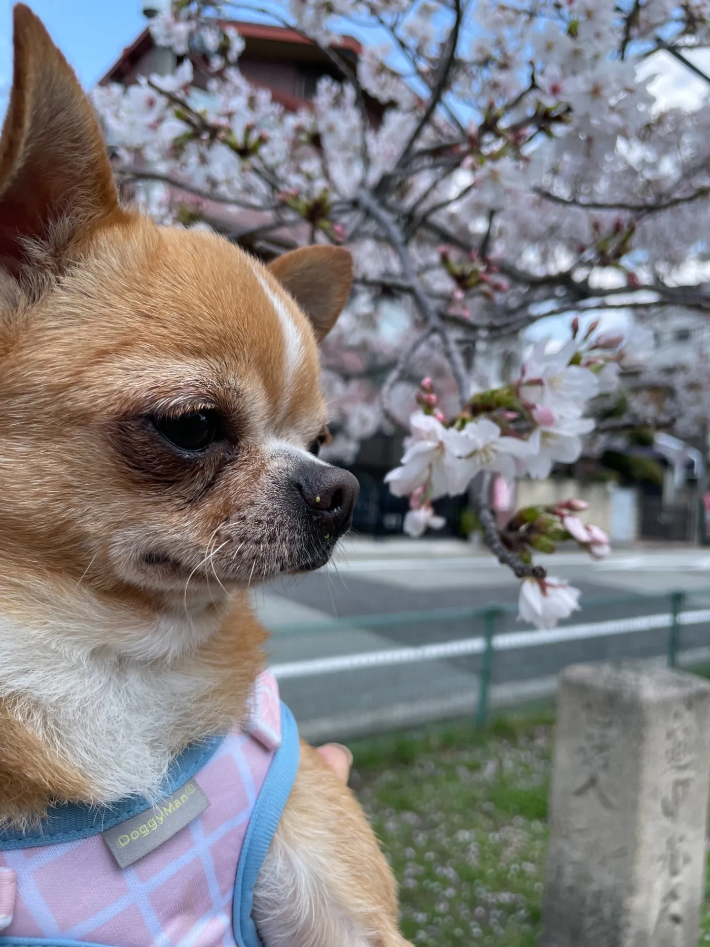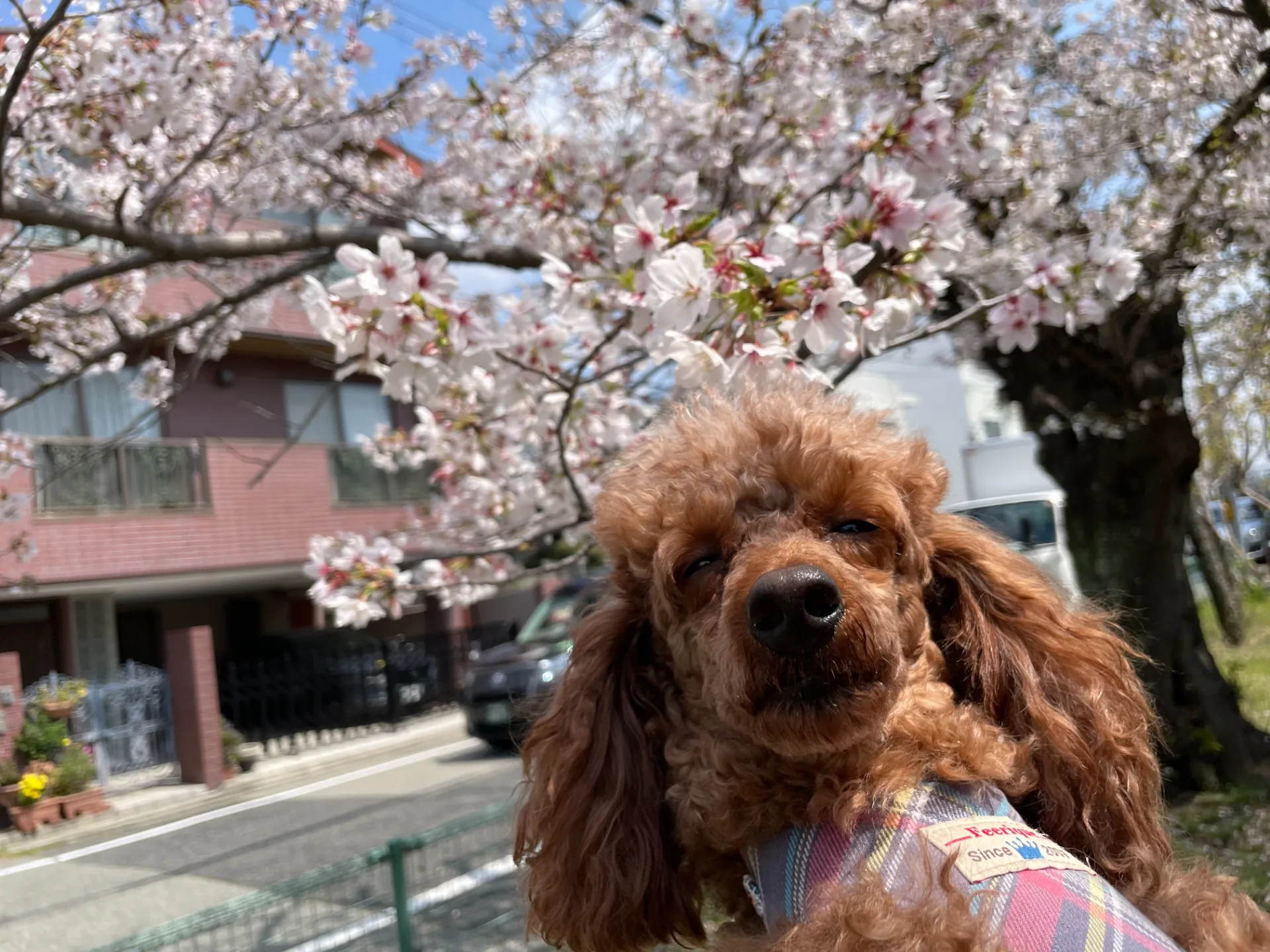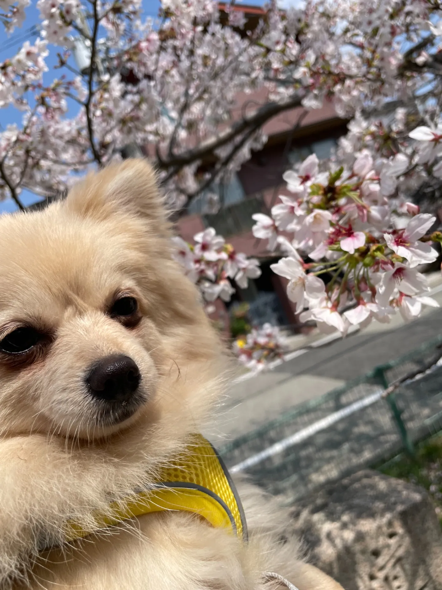 だけど、ワンコと桜を一緒に撮るのって意外と大変で、何度も背伸びをしたり角度の調整をしたりで腕が疲れちゃいました🐾