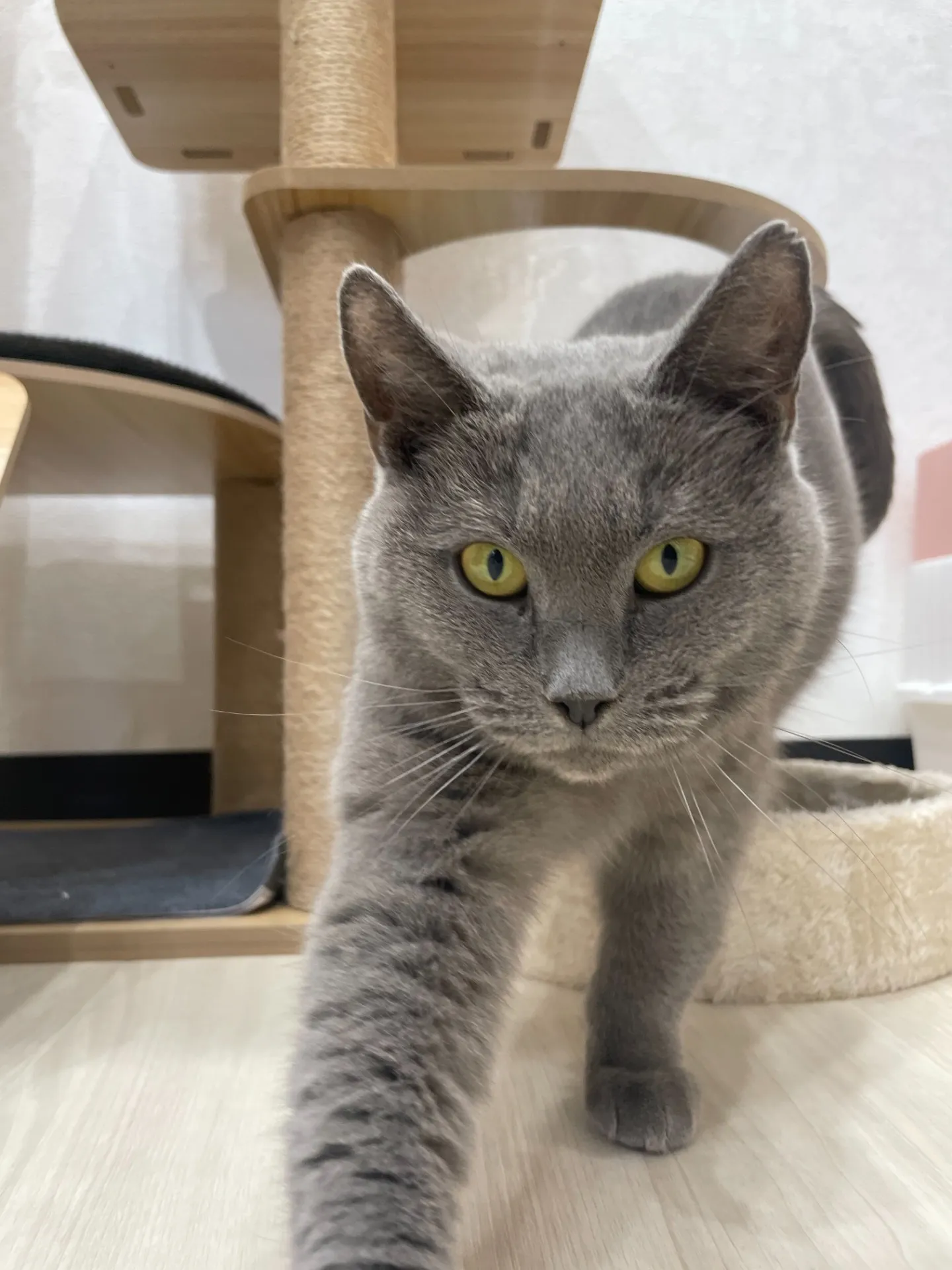 お店の保護猫紹介!第三弾!! こんにちは、店長のおかだです!お店の保護猫紹介シリーズ第三弾は、私たちの癒し系シャルトリューの女の子、『レン』です推定8歳で、体重は約4㎏。この子の特徴は、グレーの短い被毛と金色のおめめその…